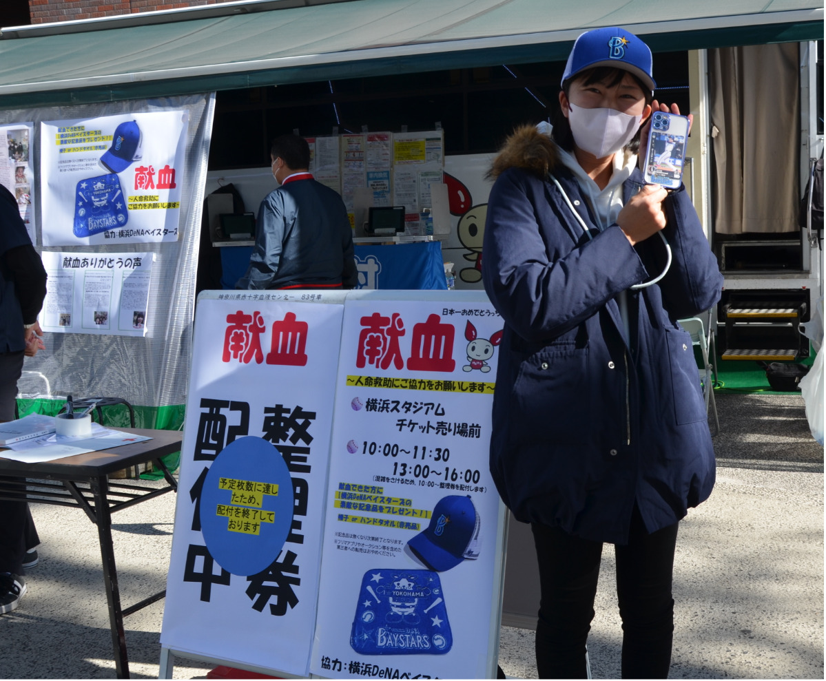 神奈川県赤十字血液センターは11月24日、横浜スタジアムで開催された「キッズベースボールフェスティバル」の会場で献血イベントを行った。横浜DeNAベイスターズが協力し、献血した人に非売品のグッズがプレゼントされた。