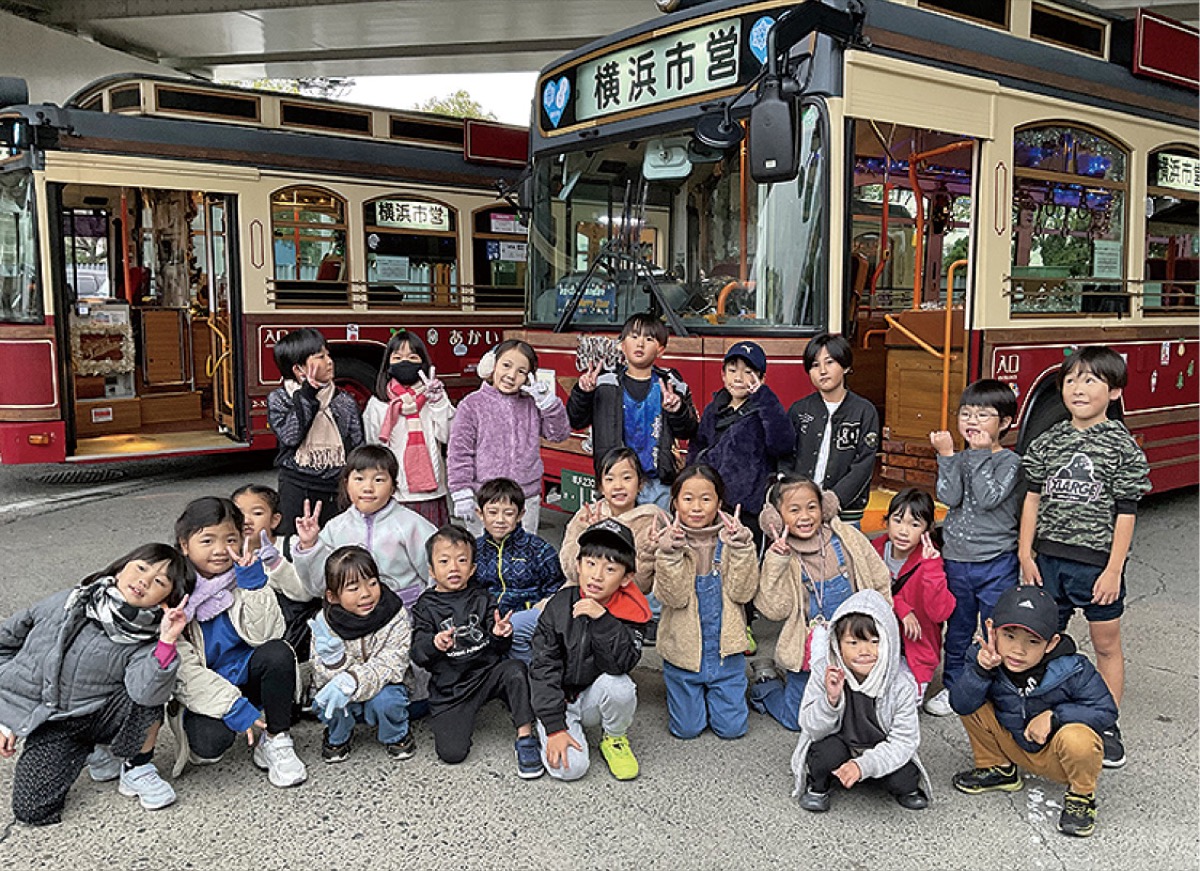 本牧南小学校(中村宏校長)1、2年生の児童有志約20人が11月20日、学校に隣接する本牧車庫で、横浜市観光周遊バス「あかいくつ」をクリスマス仕様に飾り付けた。