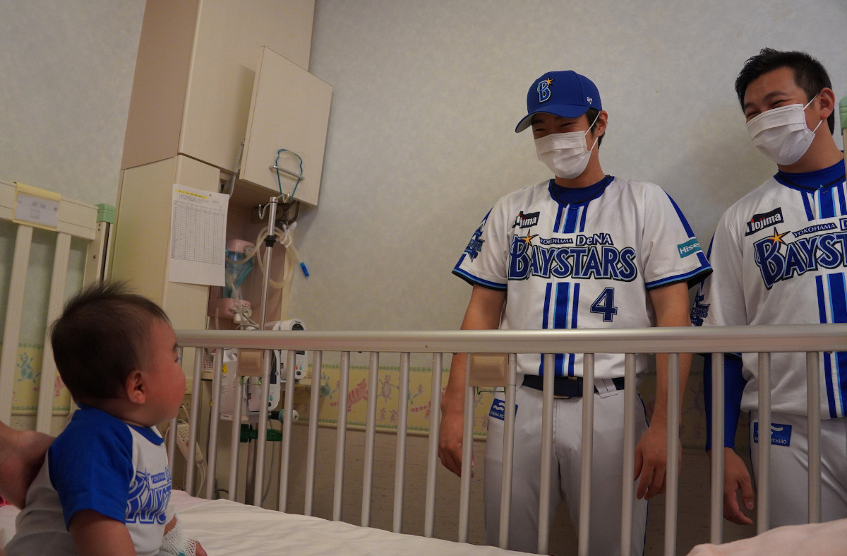 ベイスターズは、球場に足を運ぶのが難しい子どもに野球を身近に感じてもらおうと、同病院のほか、福祉施設や病院計39カ所にキッズユニフォームを寄贈した。