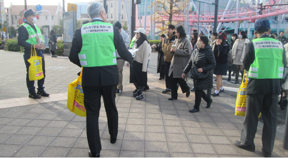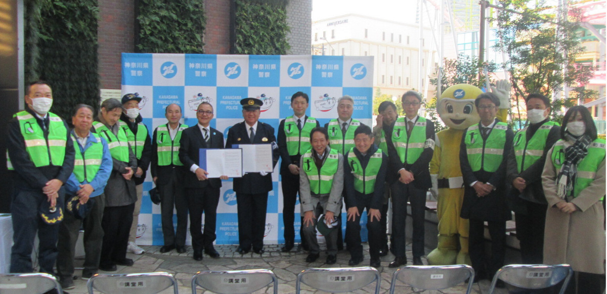協定締結式の後には、年末年始における特殊詐欺の撲滅と県民の防犯意識の高揚を目的とした防犯キャンペーンを実施。ミニ白バイの展示や子ども制服の試着会を行ったほか、防犯指導員や少年補導員などのボランティアと連携して啓発物品を配布。神奈川県警察のマスコットキャラクター「ピーガルくん」も参加し、来街者で賑わっていた。