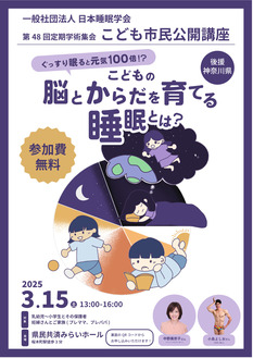 講座「こどもの脳とからだを育てる睡眠とは?」が3月15日(土)、県民共済みらいホール=中区桜木町=で行われる。午後1時から4時まで。日本睡眠学会第48回定期学術集会の主催。乳幼児から小学生と保護者、妊婦と家族が対象。