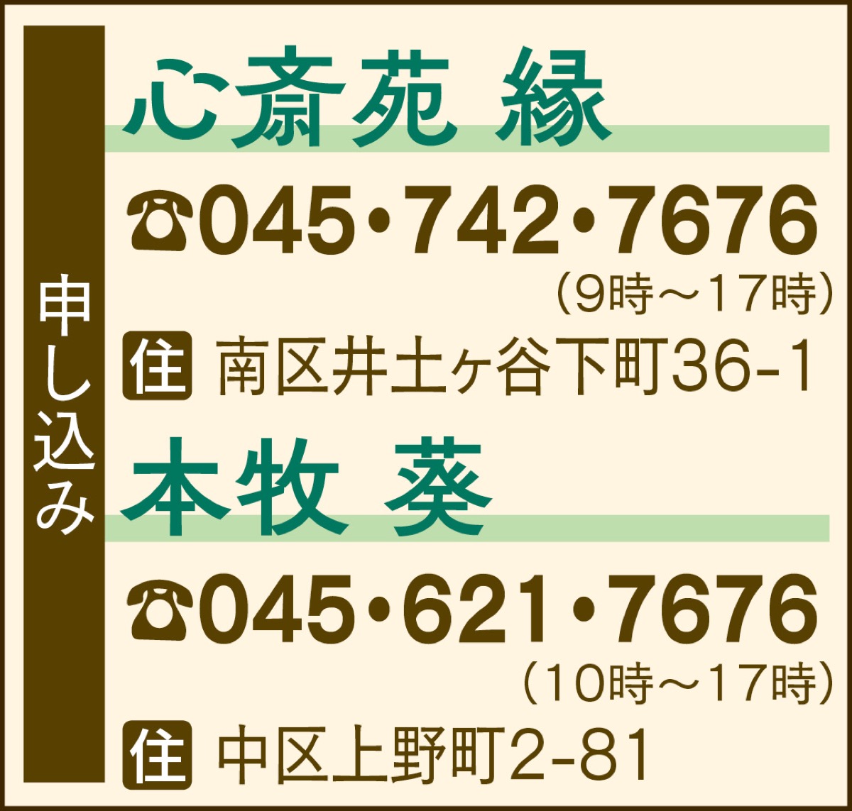 会場は中区の「本牧 葵」(3月6日(木)・先着12人)と南区の「心斎苑 縁(えにし)」(12日(水)・先着20人)。各日同内容で午前10時から11時30分頃まで。参加無料。申込み・問合わせは各会場へ。