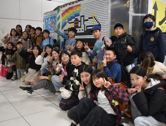 元街小学校5年3組の児童28人は3月14日、みなとみらい線元町・中華街駅の3階コンコースにペットボトルキャップで作った作品を飾った。31日まで展示される。