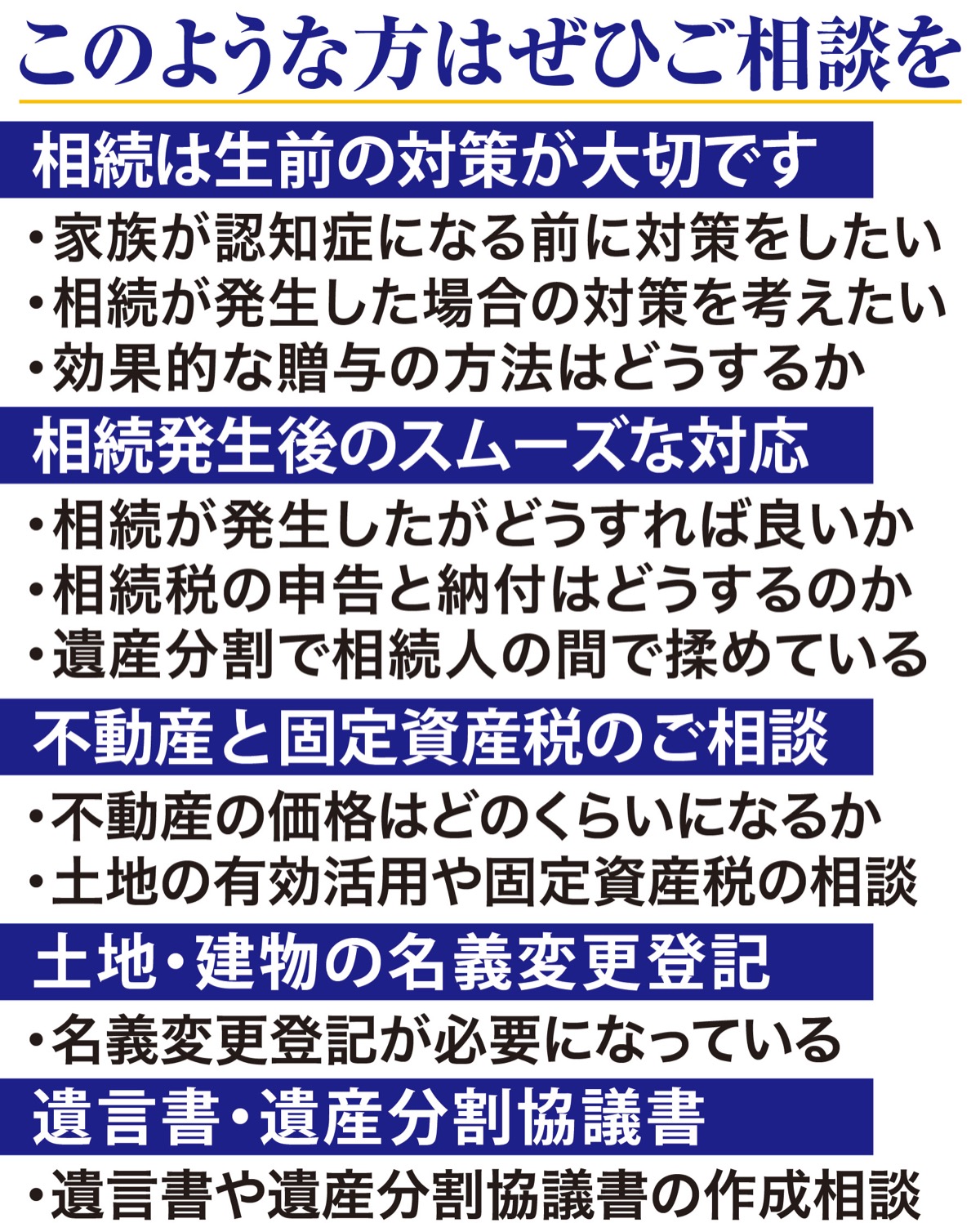 相続に関する悩みを、新横浜の専門家集団が連携し、迅速に対応-。