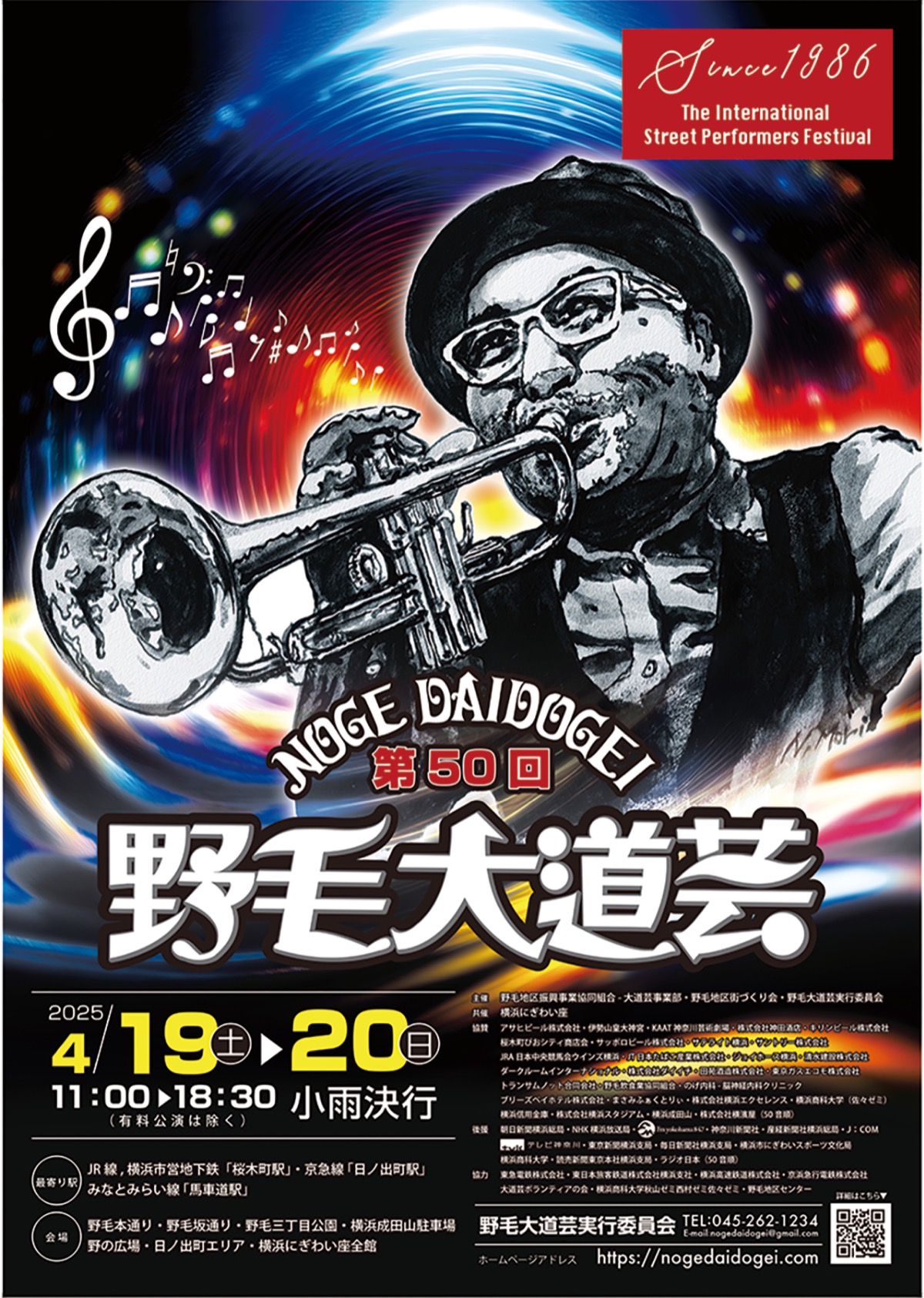 さらに横浜にぎわい座では、席に座ってゆっくり楽しめる2つの劇場型大道芸(各1500円)も開催。「ジャグリングの現在」と、歌や大道芸の歴史と共に4組のパフォーマンスを堪能できる特別なステージだ。田井昌伸実行委員長は第50回開催にあたり「野毛の町からお客様と大道芸人の皆様にお礼と感謝を込めて開催します。ぜひお楽しみください」と来場を呼びかけている。