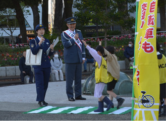 加賀町警察署(木村一署長)は4月15日、俳優の鶴見辰吾さんを一日警察署長に迎え、横浜公園で春の交通安全運動キャンペーンを行った。