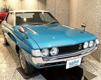 ウエインズトヨタ神奈川の本社=中区山下町=に、「セリカ1600GT」(通称ダルマセリカ)が4月27日(日)まで展示されている。