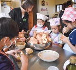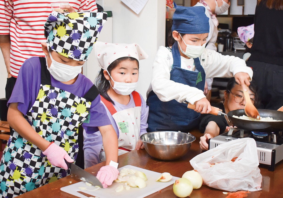 参加した子どもたちは、掃除したり会場準備をする班、包丁で具材を切る班、玉ねぎなどを炒める班に分かれ、スタッフの指導のもと作業を進めた。参加するのは2回目という石井彩葵さん(小1)は、「ここだと色んな人がいて楽しい」と話した。