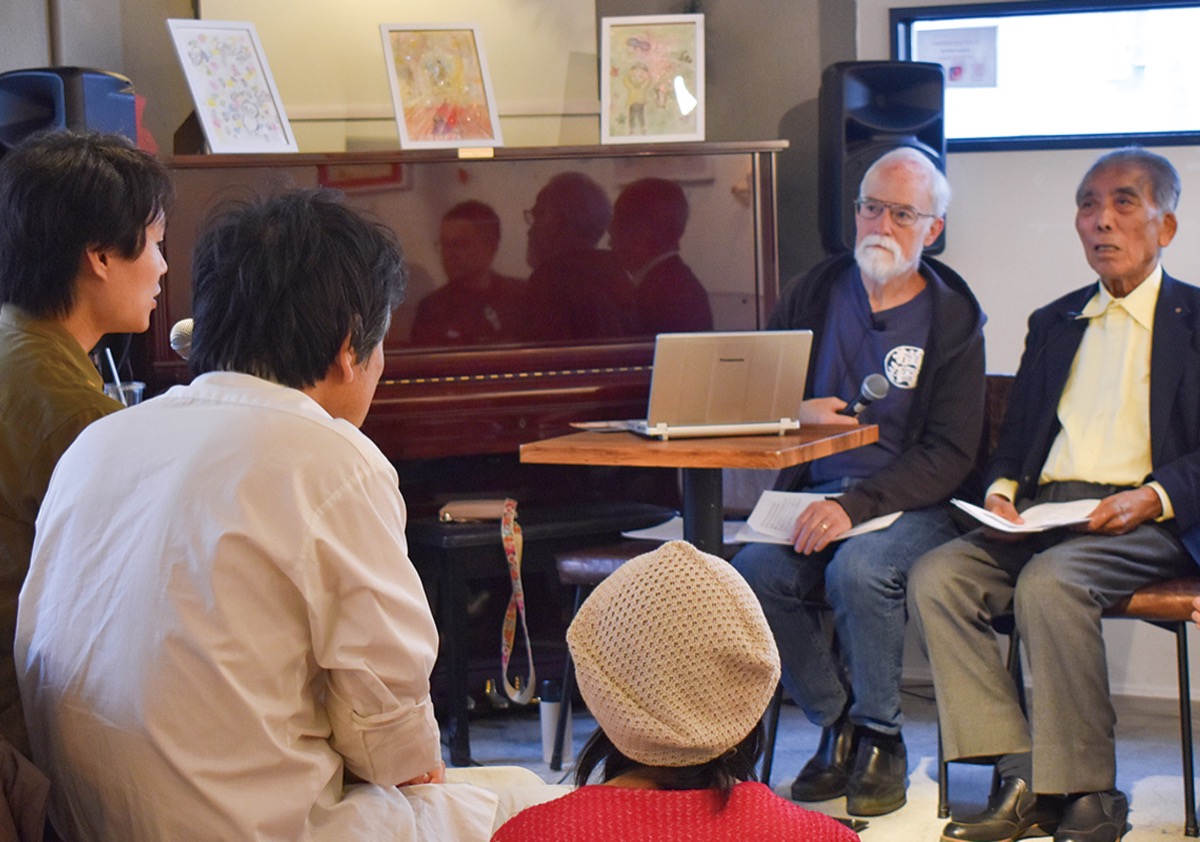 このイベントを企画したのは、7アーツカフェの代表、ジョセフ・アマトさん。日本語と英語の両方で行った意図を、「空襲体験者の日本語の記録はあるけど、英語のものはない。海外にも発信し、後世に伝えることができたら意義があるのではと思った」と話す。