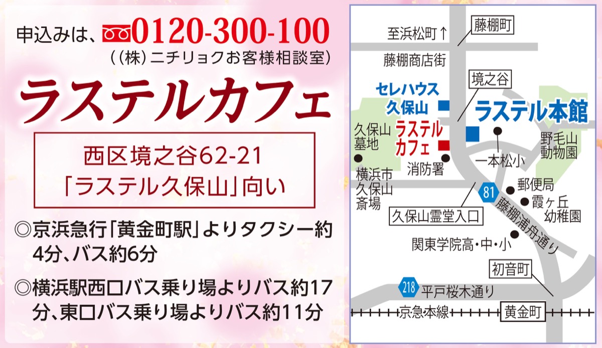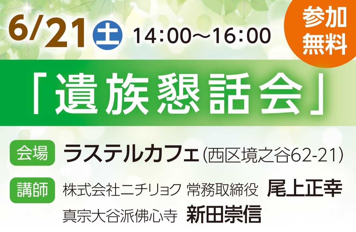 シニアライフサポートの株式会社ニチリョクが運営する「ラステルカフェ」(西区境之谷62の21)で6月21日(土)、遺族懇話会が開かれる。午後2時から4時まで。