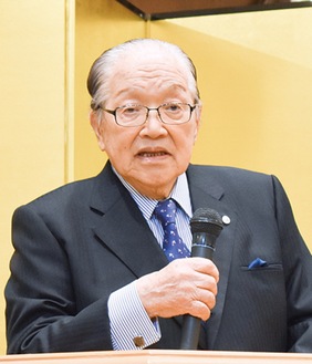 開会にあたり、あいさつしたYHR協会の藤木幸夫会長は戦時中の出来事や思いを話しつつ、「そういう時代を生き抜いてきて、今、港で使ってもらっている。これからも若い港湾の人員をみんなで育てていかなければいけない。いい港にしていく」と改めて横浜港への思い語った。