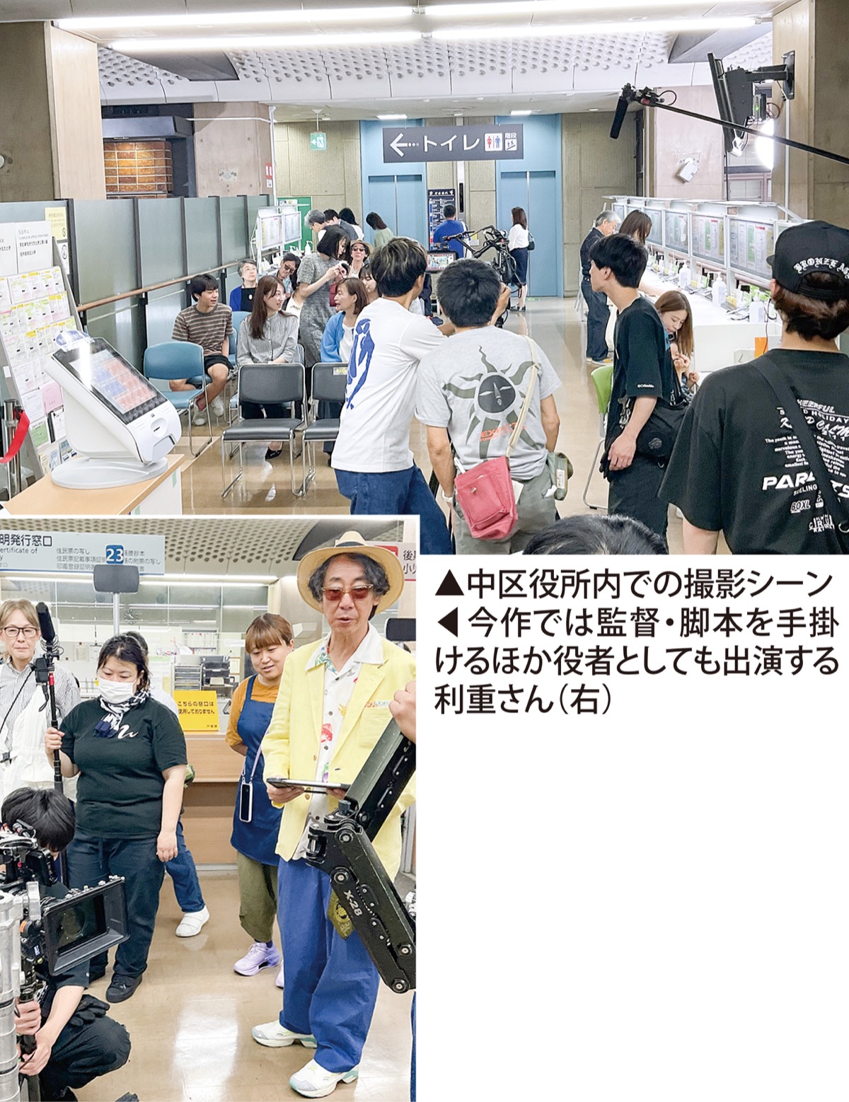 中区役所で8日に行われた撮影では区職員有志のほか、永井由香区長も出演。参加者たちは「歩くだけでも緊張した」「映画の制作の裏側が見られて貴重な体験になった」などと話していた。