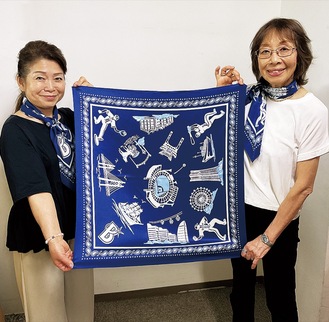 同会メンバーで、スカーフコンシェルジュの長谷川由美さんは「首や腕、カバンに巻いたり、ヘアアレンジに使ったり。1枚あれば夏は日よけや冷房の寒さ対策にもなる」と、スカーフの万能さをアピール。同会では「応援グッズだけでなく、横浜土産や日常生活でぜひ気軽に活用してほしい」と話している。
