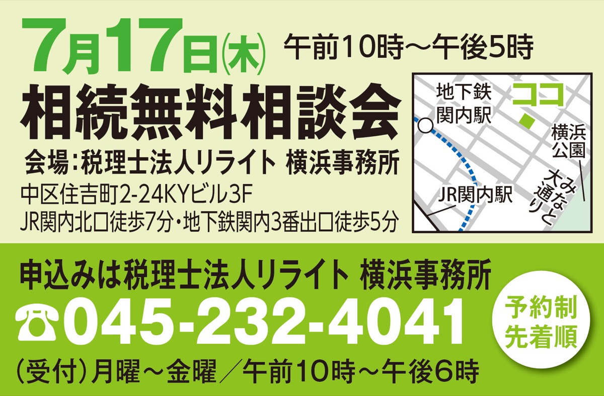 主催の税理士法人リライト横浜事務所と司法書士法人ウィスタリアがタッグを組み、税理士と司法書士がワンストップで対応する無料相談会を実施。税の専門家として相続税の仕組みや申告手続きをアドバイス。司法書士の立場から名義変更・遺産整理など法務手続きについてサポートする。申込みはお早めに。