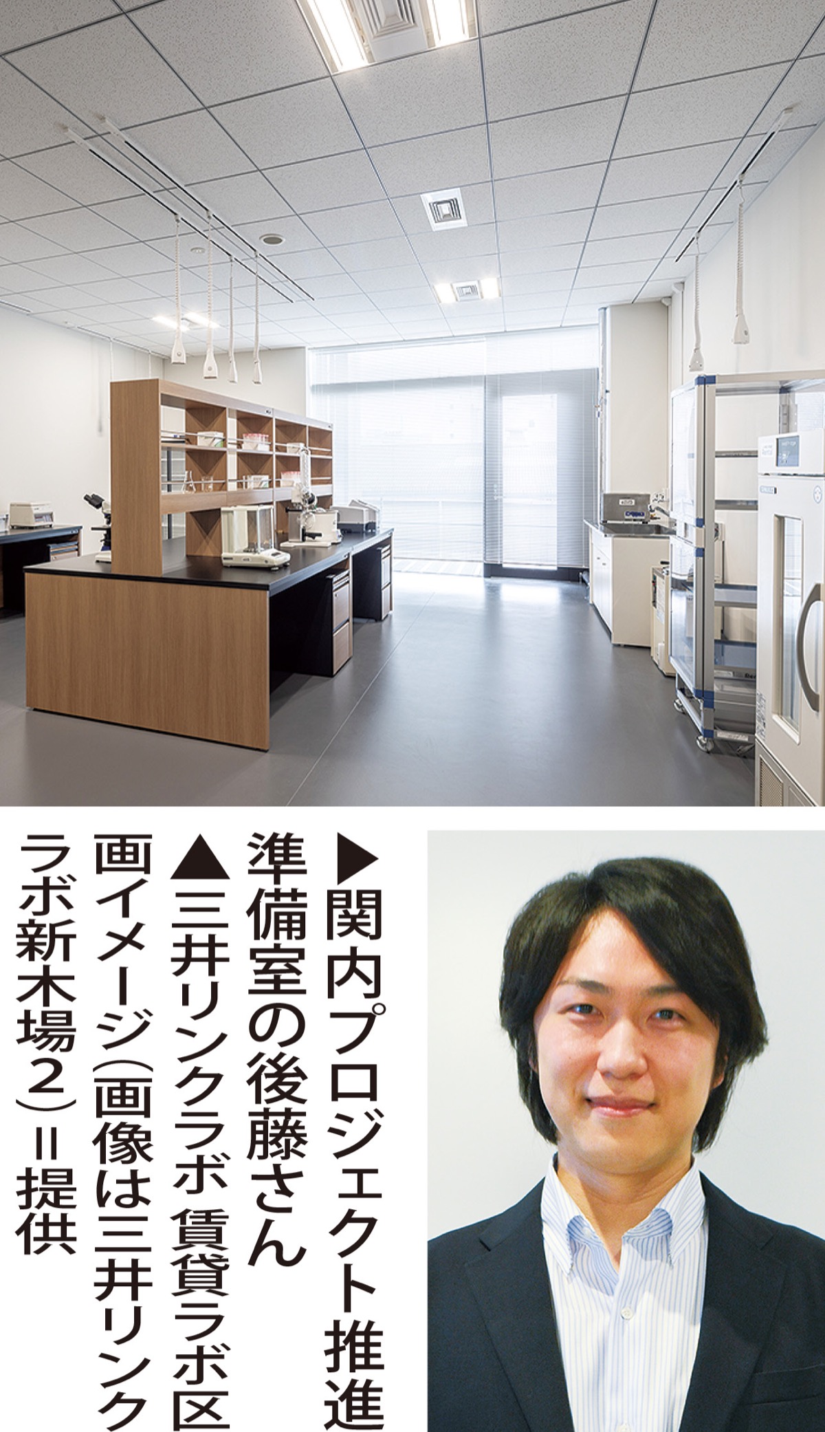 三井不動産は同法人の活動を全面的にバックアップ。横浜では初の賃貸ラボ&オフィス「三井リンクラボ」を構え、研究の場を整備する。