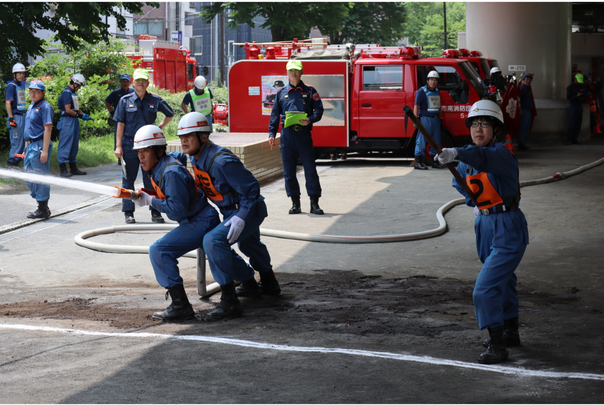 第3分団の谷小夜子分団長は「5月末より、暑い中練習を重ねてきました。団員をはじめ、激励に来てくださった関係者の方々のおかげで勝ち取った優勝です」と喜びを語り「この訓練を地域防災に活かせるよう、日々スキルアップしていきたいです」と意気込みを話した。