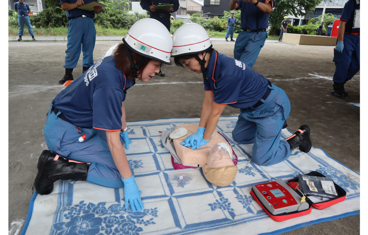 当日は、6つの分団が参加。AEDを使用した心肺蘇生法などの技術を競う「応急手当訓練」と、小型ポンプによる放水技術を競う「小型ポンプ操法訓練」の2種目で日頃の訓練の成果を競い合った。2種目の合計点で第3分団が総合優勝。第5分団が準優勝となった。第3分団は、11月に開催される横浜市消防操法技術訓練会に南区代表として出場する。