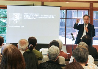 中区本牧を拠点に日本とインドのビジネス交流を進める(一社)日印女子フォーラム(大場多美子代表)は6月26日、三溪園の鶴翔閣で「日印開港者たちから私たちへのメッセージ〜インドのタタ財閥と渋沢栄一の軌跡〜」と題した講演会を開いた。NPO法人アジア中小企業協力機構が共催。当日は、約50人が参加した。