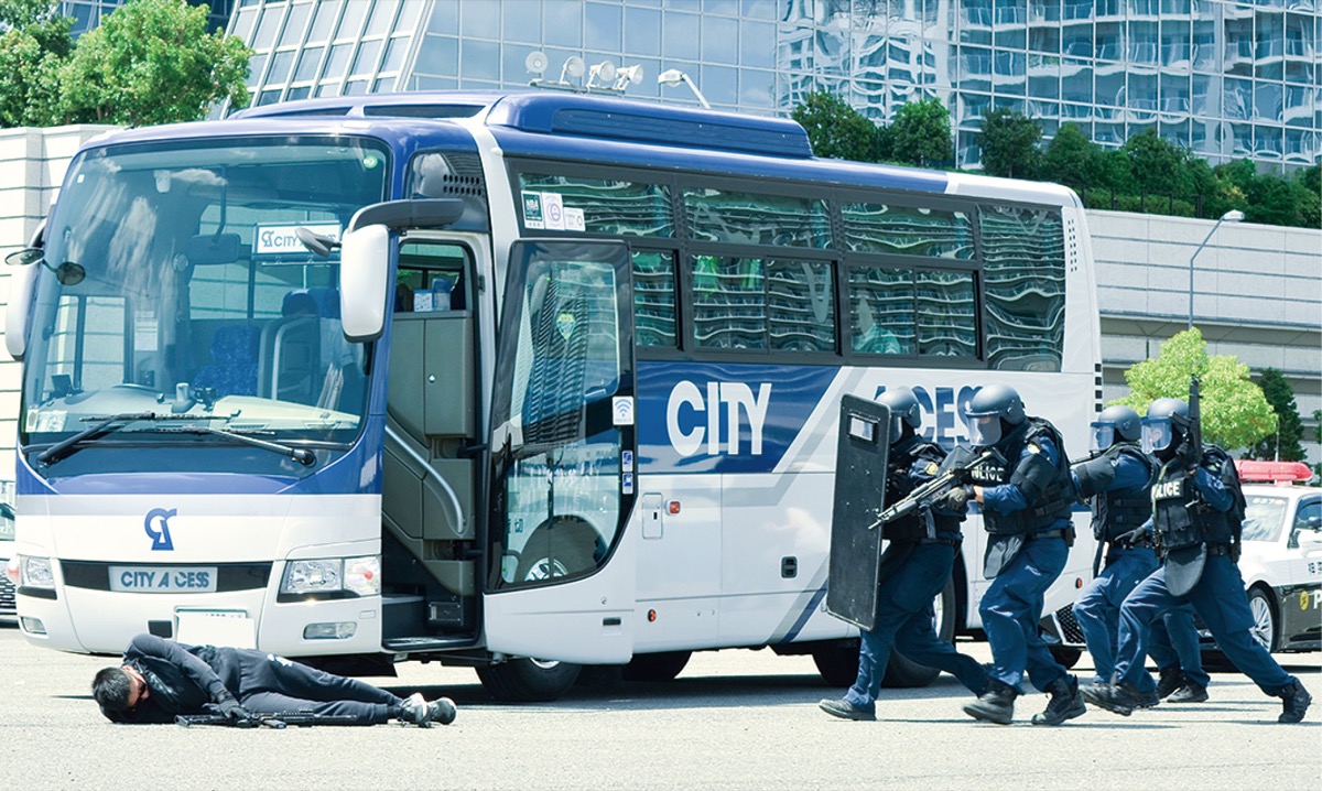 同社社員による警察への通報、高速道路交通警察隊車両や航空隊のヘリコプターでのバスの追跡、乗客の避難誘導、銃器対策部隊による犯人の制圧など、一連の流れを確認した。