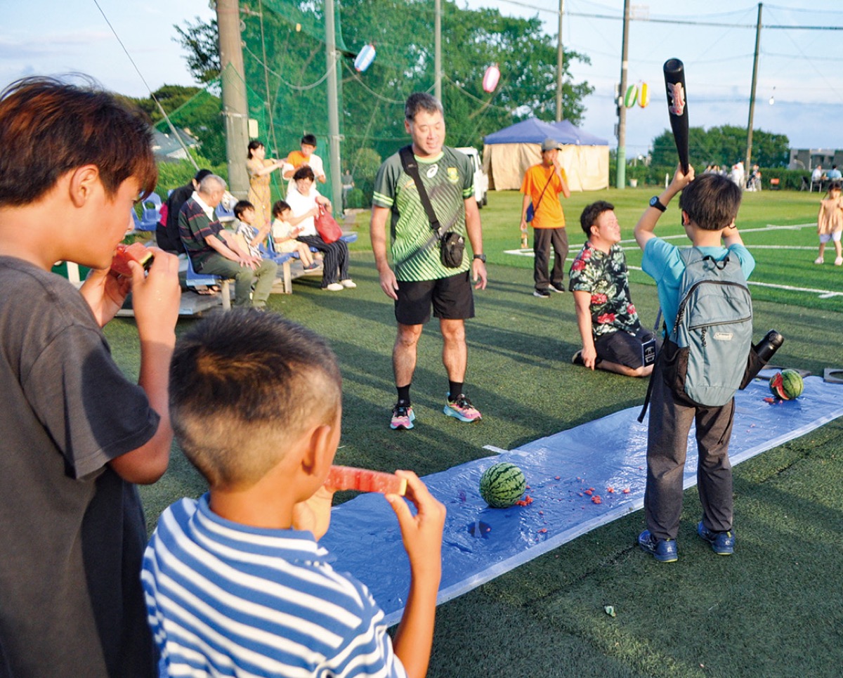 この盆踊りは、YC&ACを利用している外国人と、地元の望洋自治会の友好交流を目的に始まったもの。広大なグラウンドにやぐらが設置され、和洋の多彩な楽曲や和太鼓の音色に合わせて参加者たちが踊りを披露。会場ではスイカ割りや射的、ヨーヨー釣りなどを楽しむ子どもたちの姿が見られ、YC&AC名物のハンバーガーやケバブといった国際色豊かな屋台が並んだ。