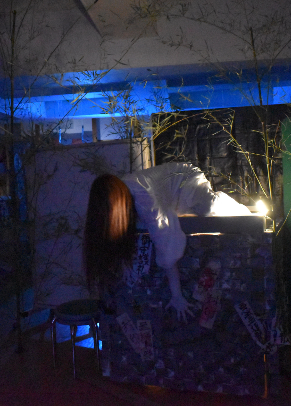 南区の日枝小学校で8月23日、「ミステリー学校たんけんとお化け屋敷」が行われた。校舎の2階をお化けがでないエリア、3階をお化けが出るエリアに分け、怪しげな札が貼られたふすまや墓地、鳥居、骸骨などを配置して雰囲気を演出。子どもたちは普段と違う真っ暗な教室で、並んだ生首が突然動いたり、井戸から着物姿のお化けが出てきたりする仕掛けを、時折悲鳴をあげながら楽しんだ。