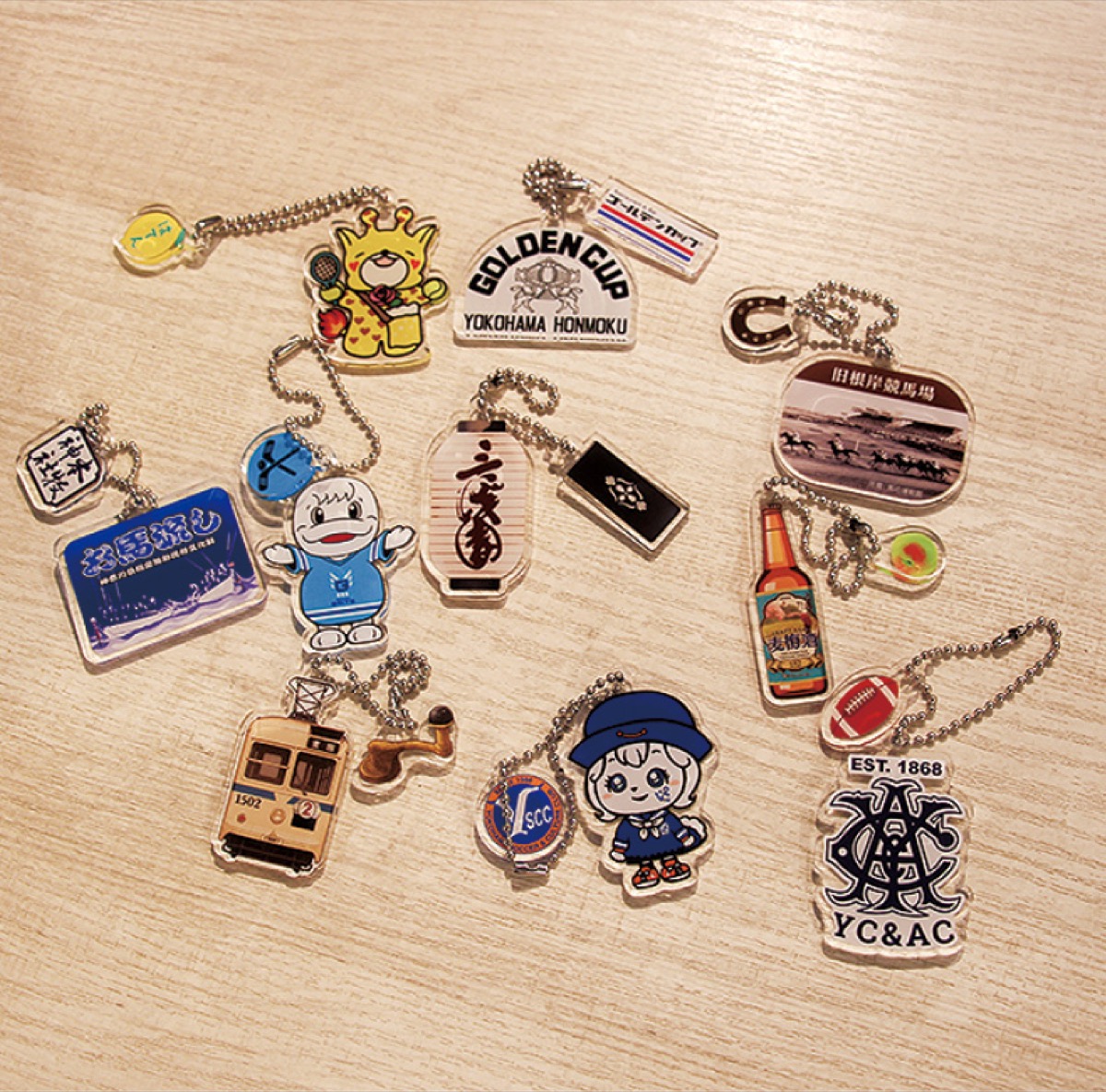 カプセルトイは、全10種類。1カプセル1個入りで300円となる。今回は全種類に主のキーホルダーを装飾するチャームをつけた。日本初の本格的な洋式競馬場として設置された旧根岸競馬場や横浜の音楽シーンを牽引してきたライブハウス「ゴールデンカップ」など地域の歴史を表したものや、プロアイスホッケーチーム「横浜GRITS」の公式マスコットキャラクターなどそれぞれ地域の特色を形にしている。同メンバーが開発したクラフトビール「麦梅酒(ばくばいしゅ)」のカプセルトイも登場した。