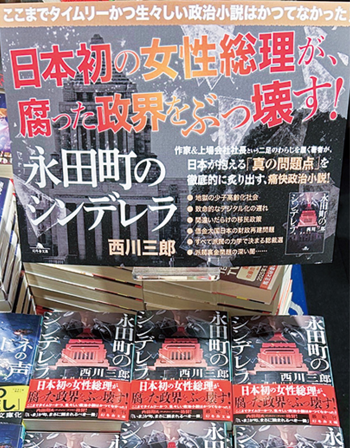 政治小説『永田町のシンデレラ』(著者・西川三郎氏)が9月11日、幻冬舎から発行され、全国の書店に並んでいる。横浜市内でも各書店と電子書籍で好評販売中だ。このほど有隣堂横浜駅西口ジョイナス店の週間文庫ランキングで1位を獲得した(9月29日時点)。