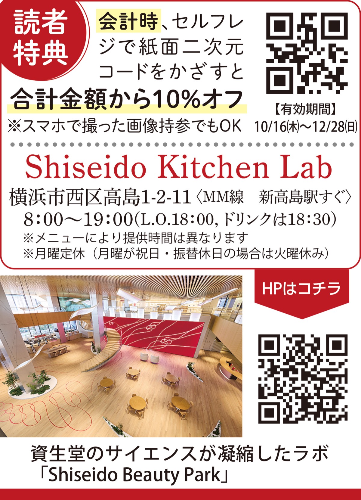 12月28日(日)まで、読者特典で合計金額から10%オフに。「肌・身体・心の『美』と『健康』をつくる新しい食体験を」。