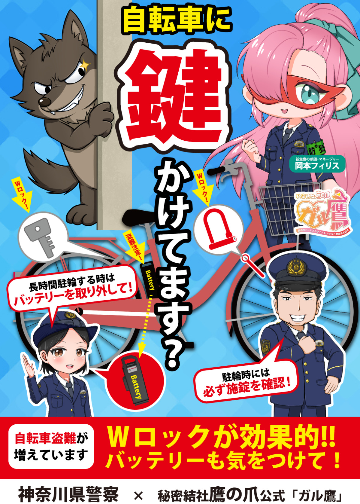 南区在住で、アニメ『秘密結社鷹の爪』のスピンオフ作品のウェブコミック『ガールズ&クエスト〜少女と鷹は爪を隠す(通称・ガル鷹)』作者の高橋浩治さん(57)は、神奈川県警察と連携した防犯啓発動画とポスターを制作した。