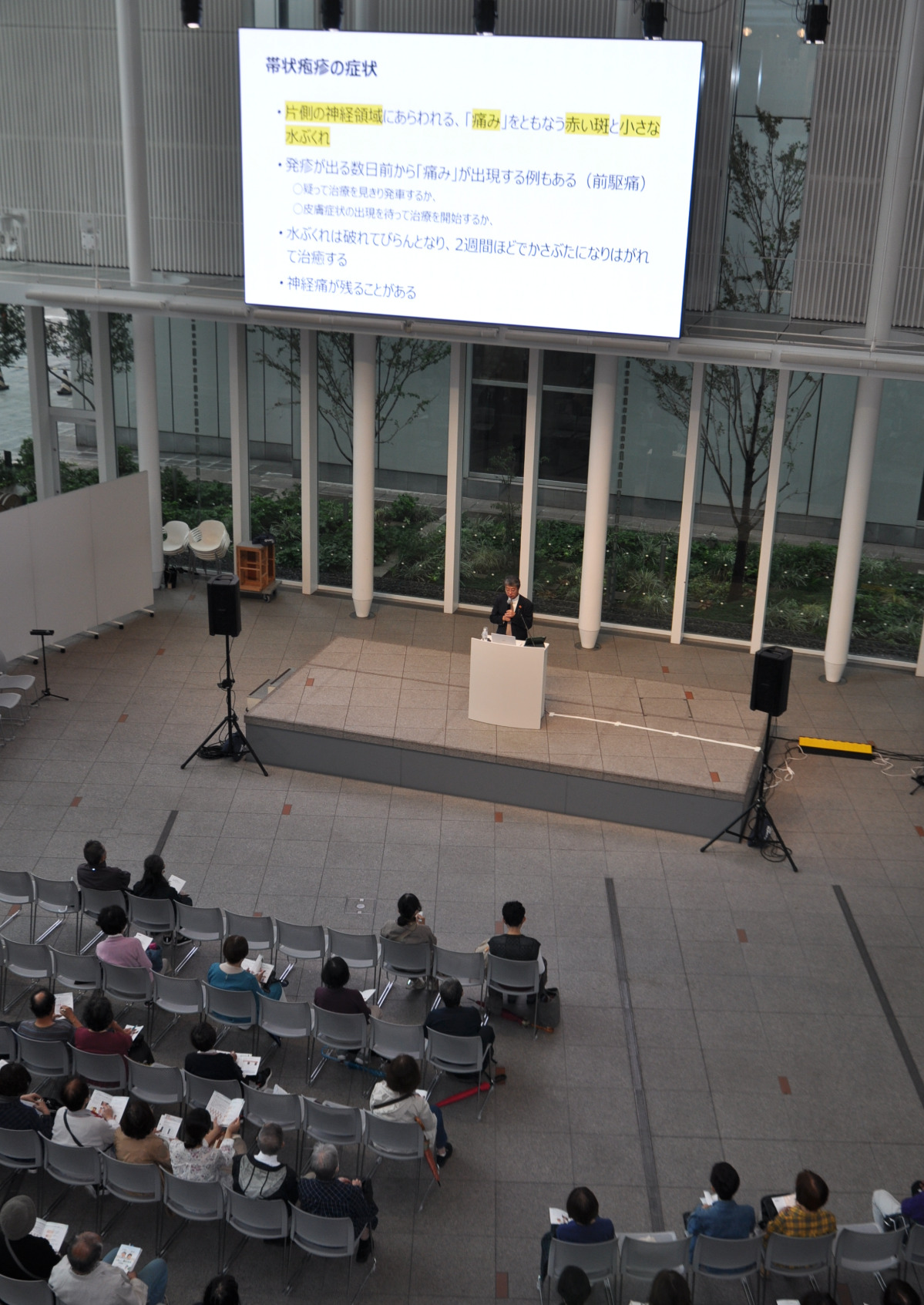 横浜市医師会(戸塚武和会長)が横浜市役所1階のアトリウムで10月16日、「帯状疱疹(たいじょうほうしん)予防接種」の講演会を開催した。