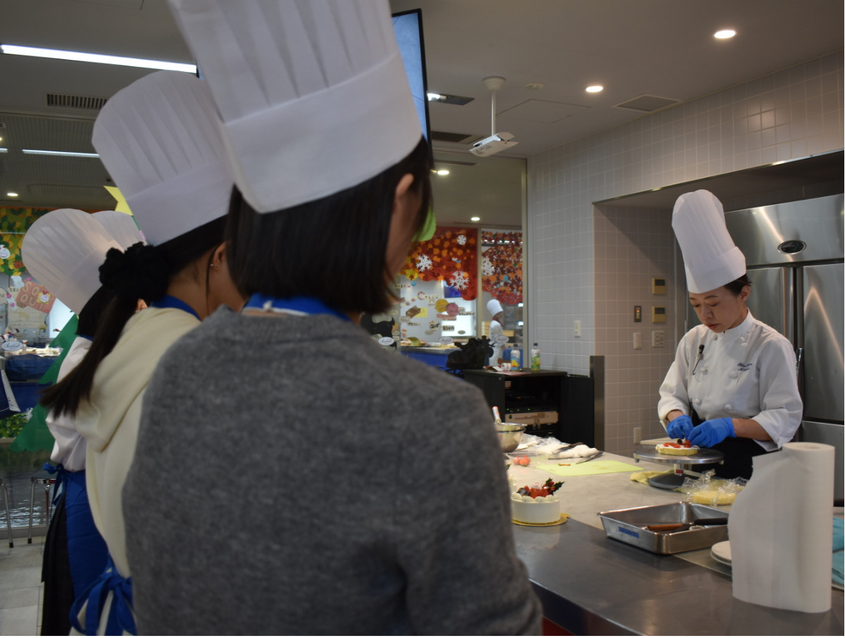 技巧を凝らした工芸菓子の展示のほか、カフェレストランや甘味処などもあり、一般の店舗同様に学生たちが接客を担った。また、クリスマスケーキを作る高校生対象の「お菓子教室」も行われた。