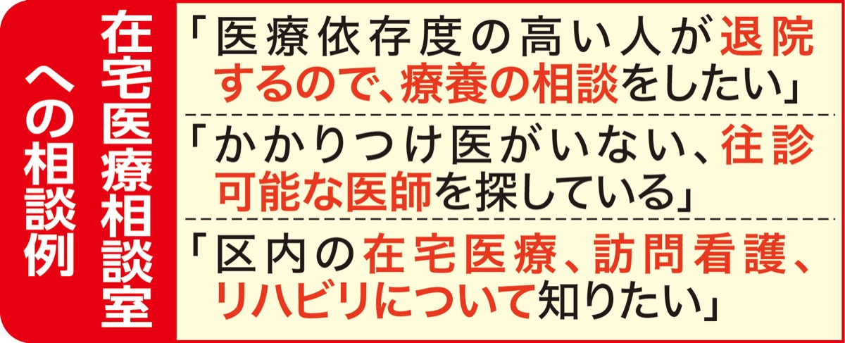西区在宅医療相談室では、介護支援専門員の資格を持つ看護師が常駐。在宅医療や介護の相談のほか、訪問診療を始めたい、通院患者の在宅サービスの相談をしたいなど開業医の相談も受け付ける。「住み慣れた地域で安心して在宅療養ができるようサポートします。1人で悩まずご相談を」