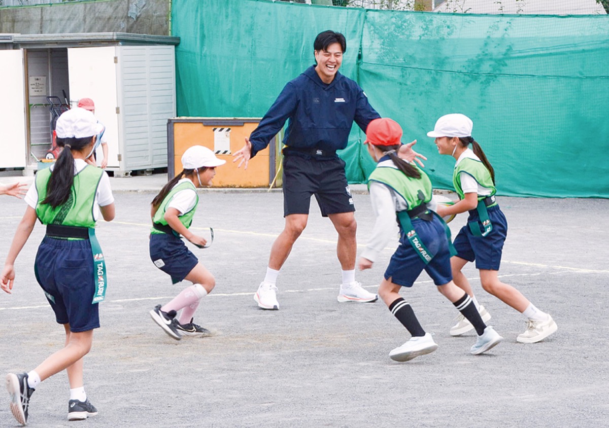 戸部警察署は11月5日、横浜市をホストタウンとするラグビーリーグワン・横浜キヤノンイーグルスの協力のもと、一本松小学校の3年生約50人を対象に防犯教室を開催した。横浜キヤノンからは、荒井康植選手と江藤良選手が参加した。