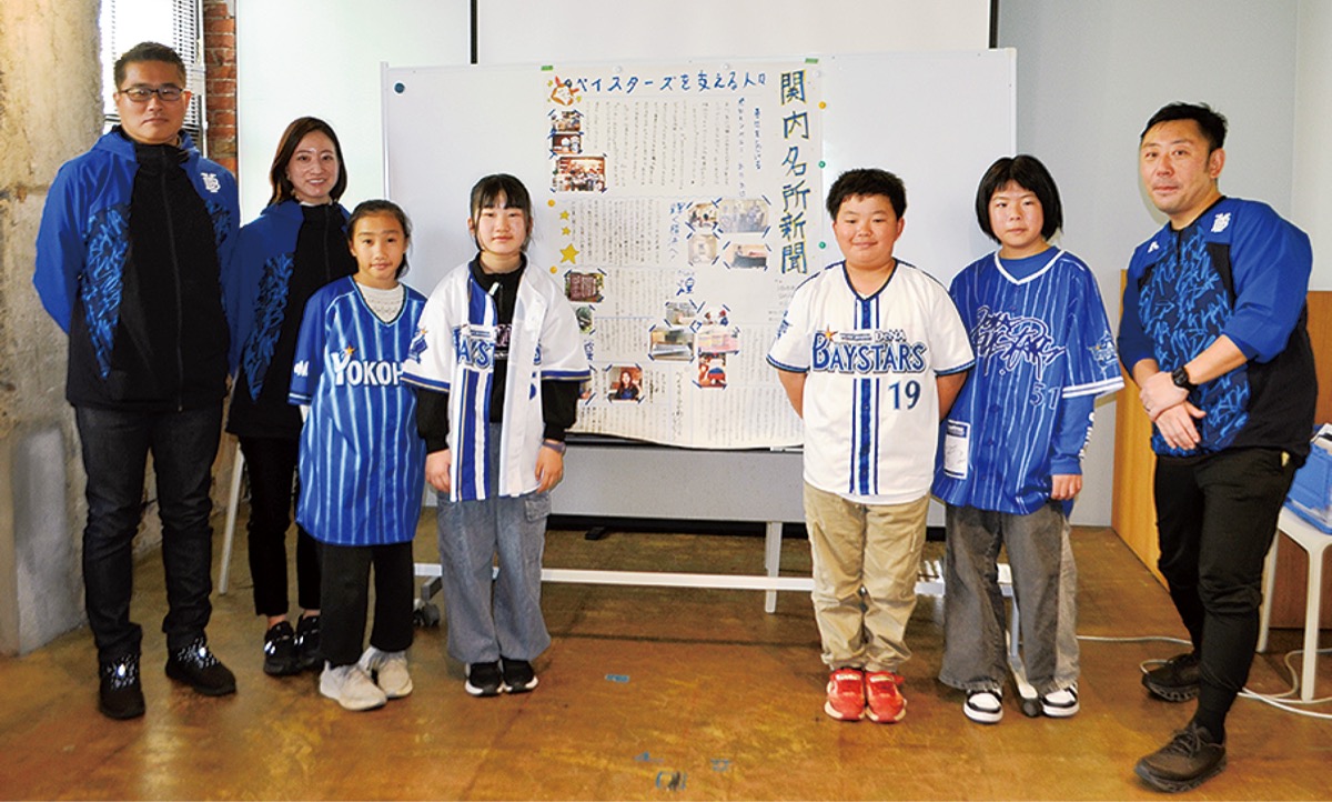 4人はまず、球団職員と地元企業の(株)ありあけの藤木隆宏社長、(株)アート宝飾の六川勝仁社長に取材。地域を盛り上げようと活動する人たちのベイスターズとの関わりや街への思いを聞き、「関内名所新聞」としてまとめた。