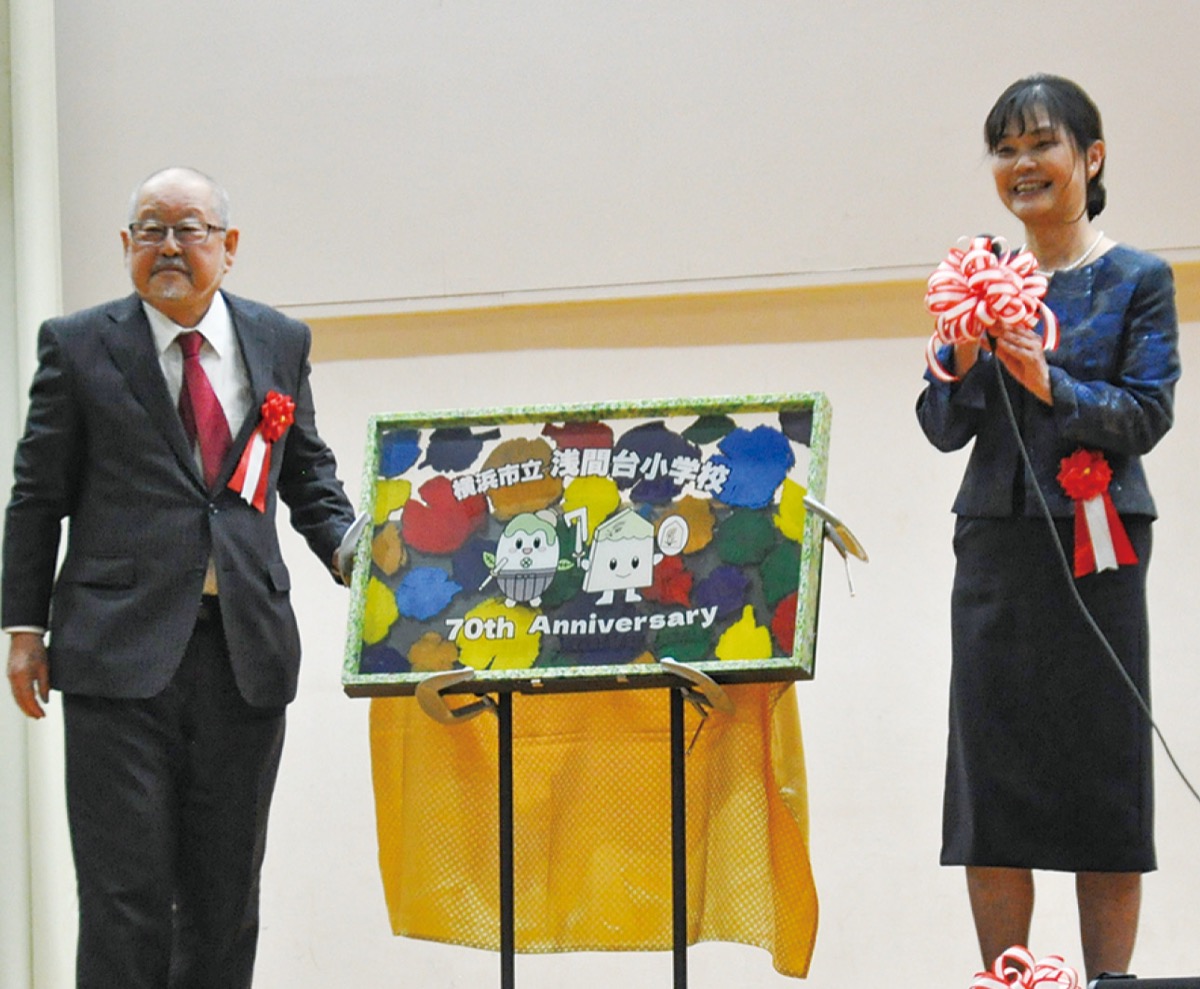 浅間台小学校(伊藤みつみ校長)=西区浅間町=の創立70周年記念式典が11月29日、同校の体育館で開催された。児童約300人と歴代の校長や地域の人らが集まり、学校の「誕生日」を盛大に祝った。