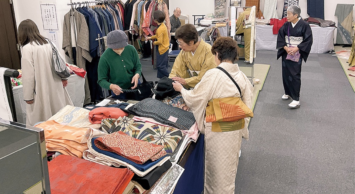 中区のシルクセンター内を会場に行われた「きものフェス」で、今回初めて本格的な甲冑体験と撮影会が行われた。