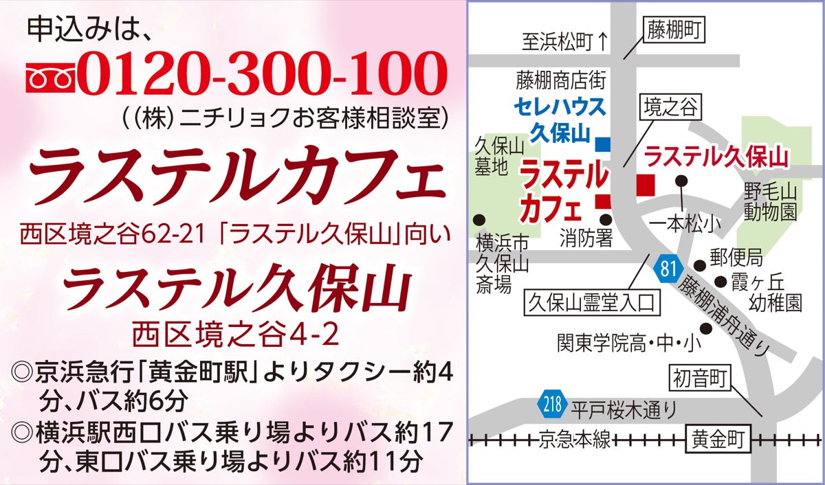 直葬と家族葬の葬儀会館「ラステル久保山」(西区境之谷4の2)では12月23日(火)に「友引の日の葬儀事前相談会」を開催。午前10時から正午まで。葬儀のプロが分かりやすく解説する。1時間ごとに2組(予約制)。