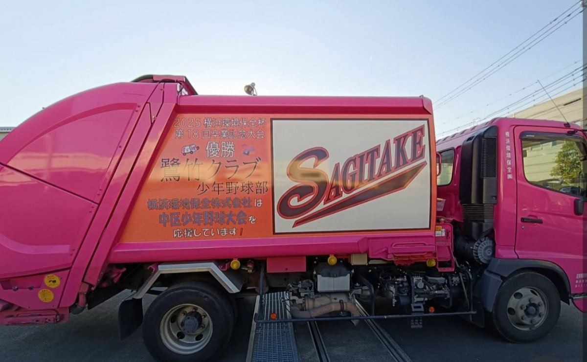 優勝を記念して、協賛する横浜環境保全(株)=中区山下町=は、鷺竹クラブのロゴステッカーを貼付したごみ収集車でのごみの回収を1年間行う。