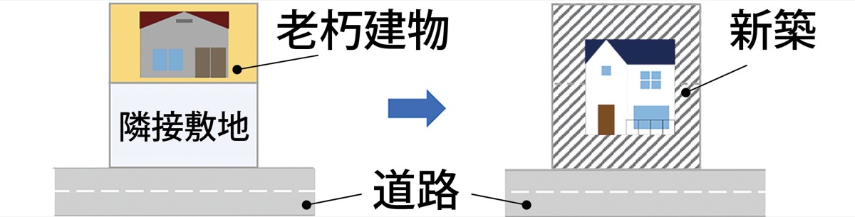 建替えが困難な狭小敷地や、道路に接していない敷地を隣地と統合し、建替えを行う場合に、補助金を受け取ることができる。
