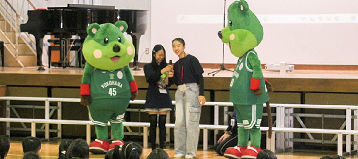 5年生の総合的な学習では、プロバスケットボールチームB2の横浜エクセレンスと地域連携活動を実施。児童が同チームの「スマイルアンバサダー」を務め、田植えを一緒に行ったり、試合への応援、チームの練習を見学するなど様々な体験活動を行っている。