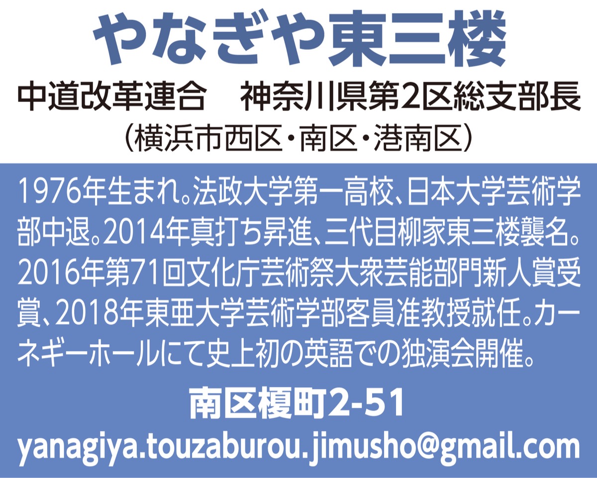 中道改革連合 神奈川県第2区総支部長 やなぎや東三楼(とうざぶろう)
