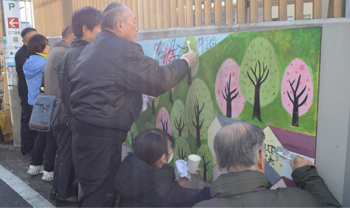 西区平沼橋の「横浜開港150周年記念壁画」に書かれた落書きを消し、当初の姿に戻そうと、除去作業が行われている。この壁画は横浜開港150周年を記念して、2009年に軽井沢中学校=北軽井沢=の生徒が制作。15年以上経ち、スプレーなどで書かれたいたずら書きが散見されるようになっていた。