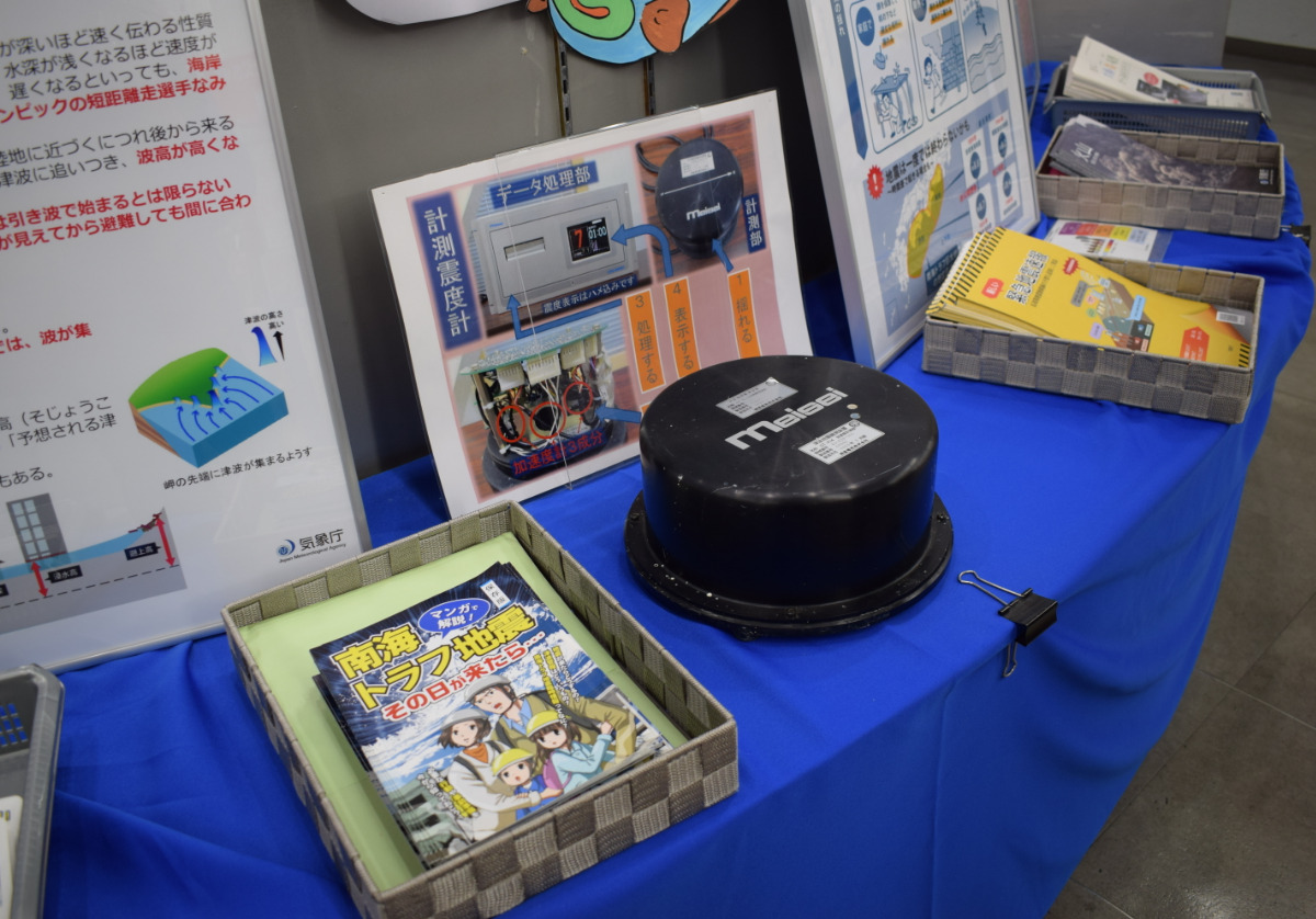 横浜港郵便局(上遠野正志局長)=中区日本大通=は1月31日(土)まで、横浜地方気象台と連携し防災コーナーを設置している。地震や津波、豪雨などの自然災害が起きる仕組みや身を守るための備えなどを伝えるポスターやチラシが置かれているほか、地震の揺れの強さを測定する計測震度計が展示されている。