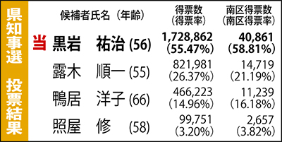 また、知事選では南区でも黒岩祐治氏が約6割の票を獲得し、強さを見せた。