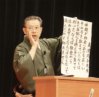 講談師の一龍斎貞花さん(写真)が「更生保護の父」と呼ばれる金原明善の物語を読み、活動の重要性を集まった人に訴えた。