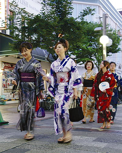 浜田さんは「歩くだけで声をかけてもらえることもある」という。今後はメンバーを増やしながら、下町らしさが残る弘明寺商店街などでも和装で歩きたいと考えている。初心者には、着付けの指導もあり。
