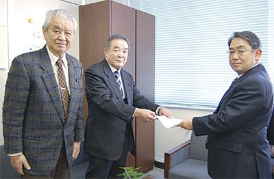 同委員会は昨年10月から4回にわたり、統合時期や通学区域、校名などを話し合ってきた。小島弘之委員長と安藤政彦副委員長が教育長室を訪れ、検討内容をまとめた意見書を山田教育長に提出。意見書には統合により、現在の富士見中の学区の一部を平楽中に変更することも含まれている。