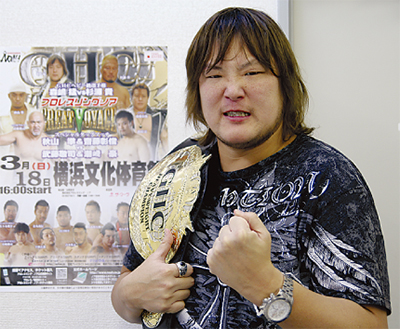 それに先立ち、同大会のメーンでGHCヘビー級選手権の初防衛戦を行う森嶋猛選手がタウンニュース社を訪れた。杉浦貴選手との戦いを前に「横浜から防衛ロードを築きたい。勝って中華街に繰り出したい」と勝利を誓った。大会には武藤敬司選手(全日本プロレス)も出場予定。
