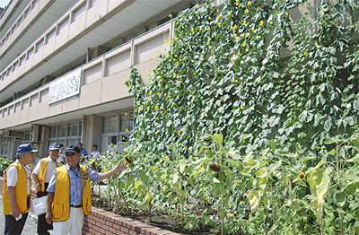 南区内の奉仕団体、横浜寿ライオンズクラブ(山崎光太会長、事務局・永田東)では、南区が行うツル性植物による壁面緑化事業「緑のカーテン」を支援する活動を行っている。区内の小学校で育てられるヘチマの苗などの購入資金を区に寄付している。