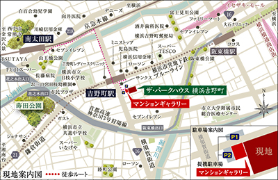 このマンションの最大の魅力は、地下鉄吉野町駅から徒歩2分(約95m)の位置にあるということ。鎌倉街道と16号線から1本奥に入った場所にあるので、喧騒とは一線を画すロケーションにある。マンションの南側は、戸建て住宅が広がっているため、日当たりや開放感が期待できる。
